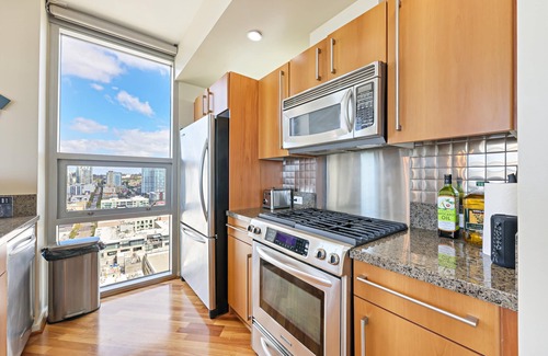 Two bedroom Penthouse with beautiful views of Downtown and San Diego Bay is located in East Village. Two bedroom Penthouse with beautiful views of Downtown and San Diego Bay provides accommodation, featuring Balcony/Terrace, Bedding/Linens, Wellness Facilities, among other amenities. This Condo features Balcony/Terrace, Bedding/Linens, Wellness Facilities, to make your stay a comfortable one.