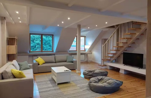 Two-level Sielecka Apartment is located in Sielce. Two-level Sielecka Apartment provides accommodation, featuring Fireplace/Heating, Child Friendly, Internet, among other amenities. This Condo features Fireplace/Heating, Child Friendly, Internet, to make your stay a comfortable one.