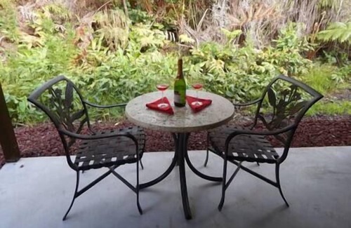 Experience tranquility in our forest-enclosed rooms, providing a calm refuge with private lanais for dining to the melody of forest birds. Each room is a sanctuary equipped with a plush 14-inch memory foam mattress and a flat-screen TV. Our courtyard, a mix of open skies and enclosed areas, features a hot tub for ultimate relaxation. Enjoy the amenities of an in-room coffee maker, microwave, and refrigerator. The majesty of Volcanoes National Park, just 2.5 miles away, invites your discovery.