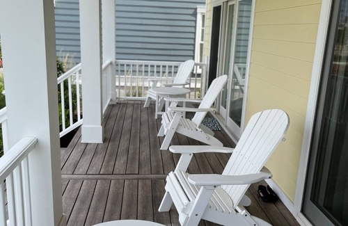 Enjoy the sunrise from either the first or second porches and enjoy your Morning coffee. Then greet the evening sunset from one of the three back porches while watching the sun disappear and numerous waterfowl over the Chesapeake Bay. Large screen 4K televisions allow you to enjoy your favorite movies or sport channel, special game port in the downstairs TV/get away room, or curl up with a good book. Let the kids enjoy their games and shows downstairs while adults have their time on the second floor. Enjoy the serenity of the wildlife and private beach less than a two minute walk through a community park, and less than a five minute walk from the signature golf courses designed by Jack Nicklaus and Arnold Palmer.