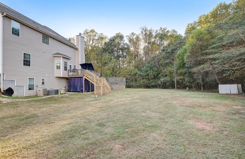You will feel transformed when you walk in the door of this magical vacation home. If you have a large family everyone will have room to stretch out and be themselves. This wonderful home boast 5 great themed bedrooms. Each room will transform you into another world. The front lounge area allows for reading, playing games or even getting in a little work at the computer desk with free printer use and WI-FI. The kitchen has all the luxuries you'll need to cook a variety of meals, or stop by the Coffee and Tea Bar and have continental breakfast daily. If you choose to have a night on the deck a family cookout will surely be in order. The Den has a 60 in TV that will allow the family to have a fun movie night. If you love nature this home is for you, rabbits and deer frequent the backyard and the night sky is amazing. A beautiful sparking pool awaits you where you can lounge, enjoy the outdoors and forget the worries of the day. Your family can spend a day at Atlanta Motor Speedway or Georgia State Fair and come back to your beautifully decorated room and super comfy bed where you can pull back the curtains and snooze off. This home is situated between great shopping, eateries and there are many things to see and do in a short ride.