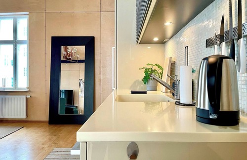 Welcome to a unique design house right in the center of Oslo! This apartment offers modern style, cozy atmosphere and everything you need for a wonderful stay. Fully equipped kitchen, comfortable living room and a relaxing bedroom make it a perfect home. Central location provides easy access to restaurants, shopping and attractions. Good public transport connections make it easy to explore Oslo. An ideal choice for couples, families or friends who wants a special experience in the capital!