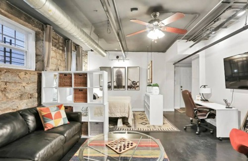 This fun spacious studio in heart of Midtown places you steps from famous Piedmont Park. Including an arcade game machine, air hockey table, darts, massage chair hopscotch, board games, and a 55" TV, this place is a good time waiting to happen. Well-stocked amenities and cozy architectural details, including exposed granite walls and an industrial-style ceiling, make it feel extra special and perfect for relaxing after a day of enjoying all ATL has to offer. It’s just like home, only better. reserve free parking space with booking and let me know if driving a truck.