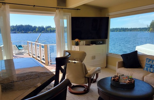 Unique Lake Goodwin Waterfront Cabin with Hot Tub, Fire Pit & Large Deck is located in Lake Goodwin. Unique Lake Goodwin Waterfront Cabin with Hot Tub, Fire Pit & Large Deck provides accommodation, featuring Hot Tub, Entertainment, Barbecue/Outdoor Cooking, among other amenities. This Cabin features Hot Tub, Entertainment, Barbecue/Outdoor Cooking, to make your stay a comfortable one.