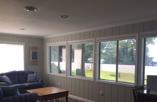The inside of the Wishing Well offers a sunroom and TV room, dishwasher, full size fridge and furnace/AC. The Wishing Well has a main bedroom queen bed), front bedroom (bunk bed), bath with shower, full kitchen to seat 10, sunroom with 7 windows to view the lake and a TV room room with comfortable furniture to kick back and relax after a day at the beach. The Turtle Hut has 2 bedrooms (queen beds in each), bath with shower, living room, closed in sunporch and a partial kitchenette (sink, small fridge, microwave and coffee maker). There is an air/heat unit that is vented. Both cottages are well maintained.