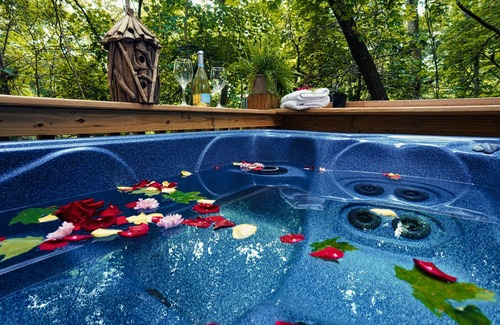 There are several other vacation rentals on this property. The treehouse hot tub is shared. With the neighboring tree house mansion. We ask that guests do not invade other people's privacy and look in windows or open doors of other buildings. We are more than happy to schedule a time to give you a tour.
