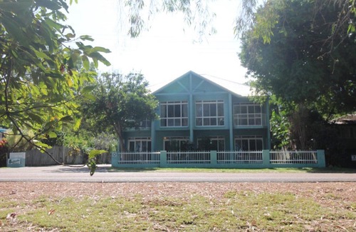 Air conditioners and ceiling fans in two bedrooms, one with a queen bed and 2nd bedroom has two single beds.