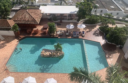 swimming pool , beach bar restaurant. sauna hairdresser, 24-7 security . Walking distance to mullet beach and cupecoy beach 5 mn