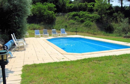 Amid pines and olive trees, this large property with its lovely house is situated in the heart of the countryside. There is a carport for your cars, and a beautiful wisteria-covered terrace will shade you from the sun as you share your meals with family or friends. The pool area is comfortable and relaxing, too. A table-tennis table and football goalposts will keep you occupied in the evenings.