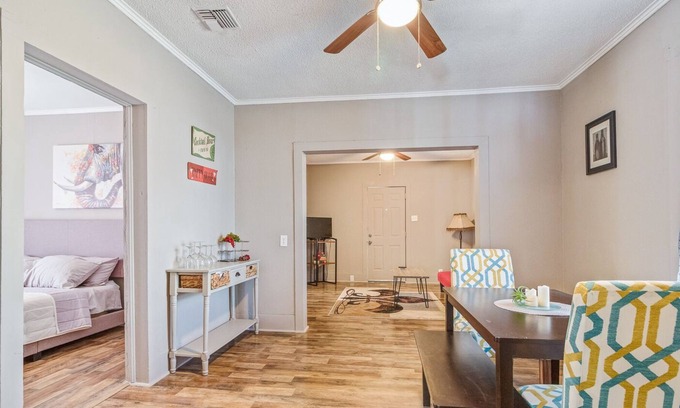 Updated cute cottage. Ready for 5 guests. The home is walking distance to downtown New Iberia. Pet friendly, no carpet. The sofa can be an extra bed if needed. Full kitchen with private washer and dryer.