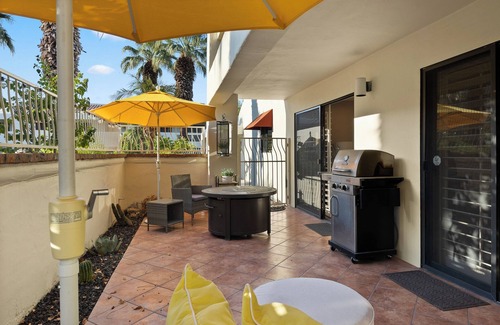 With great separation between the two ensuite bedrooms, this spacious ground floor unit lives more like a house than a condo. Tastefully furnished with stylish flair, this also unit offers a front patio and private back patio with lounge seating, a barbecue grill, and is just steps away from the pool and spa.