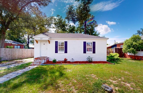 Updated home 3 blocks from the beach with private yard, AC, & W/D is located in Panama City. Updated home 3 blocks from the beach with private yard, AC, & W/D provides accommodation, featuring View, Security/Safety, Bedding/Linens, among other amenities. This House features View, Security/Safety, Bedding/Linens, to make your stay a comfortable one.