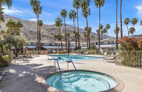 Discover your oasis in the heart of Palm Springs! Our newly updated condo is just a stone's throw away from downtown, making it the perfect home base for exploring all that this vibrant city has to offer. With an extra large bedroom, cozy living room with fireplace, fully equipped kitchen, and luxurious bathroom, this space is ideal for friends or couples. You'll enjoy 4 pools or 2 spas to choose from, a private outdoor area to dine al fresco with mountain views, and walkable access to restaurants, shops, and nightlife.