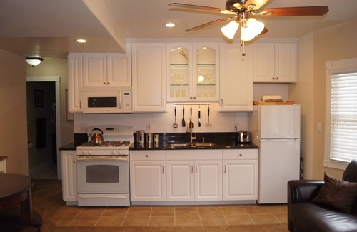 Located in a Historic District on the Slope above Downtown San Diego, this beautiful Queen Ann Victorian accommodates up to 4 guests. This unit features a living space, 2 bedrooms, bathroom, living area and full size kitchen. No expense was spared in the design of this highly upgraded unit which features views of the Ocean, Coronado Bridge and the islands off the coast from the property's front porch. The living area features a leather sofa, large LED smart TV, dining table and chairs and ceiling fan. The kitchen is beautifully upgraded complete with everything you will need to cook your own meals during your stay with us. The bathroom is brand new, separate from the bedrooms and equipped with plenty of plush towels, shampoo, conditioner, body wash and a blow dryer. There are Queen size beds in each of 2 separate bedrooms. Both Queen beds have memory foam mattresses which are very comfortable. Each bedroom also has a ceiling fan, in-wall air conditioner and a high definition LED smart TV with cable access and streaming capability. Additional features include a Backyard common areas with Barbecue Grill, Gazebo with table and chairs and Outdoor Fireplace. Our property is located 5 to 10 minutes driving distance to the Convention Center, Gas Lamp district, Ball Park, Coronado Island, the Airport, Balboa Park and the Zoo. Freeway access is located around the corner and bus stop transits to and from downtown can be found within a block. All local beaches are within easy driving distance of the property. Some of Golden Hill’s most popular spots such as the Turf Club, Panchitas Bakery, Krakatoa Coffee Shop, Luigi's Pizza and Golden Hill Park are all within easy walking distance. Enjoy a morning cup of coffee and Coronado Bay Bridge views from the patio table and chairs provided on the front porch. There is an on-site laundry with laundry detergent and fabric softener tissues provided. Enjoy these beautiful and unique accommodations while experiencing all the best that San Diego has to offer.