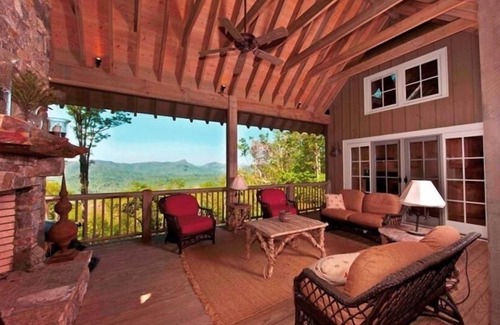 Designed by Al Platt (yes, the same one who designed the nationally recognized 2006 HGTV Dream Home), Mountain Laurel Cottage not only takes advantage of the impressive view from this five acre estate, but also offers a superb natural mountain experience. Enjoy a cool mountain breeze, or the warmth of a crackling fire, on the comfortably furnished, screened, living room/porch, which is the common family area of the home. Screened on three sides, it has a high vaulted ceiling, and lets you enjoy the acres of surrounding nature. Inside the home are the bedrooms, bathrooms, den/living area and the kitchen that opens onto that screened living room/porch area. Peace, quiet, and privacy are your neighbors. From the living room/porch step outside onto an uncovered deck where there is a large gas grill ready to cook your favorite meal. This is truly designer mountain living!