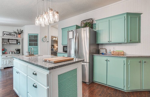Experience the perfect blend of nature and comfort at this 3-bedroom, 2-bath vacation rental in Pottsboro! Ideal for large families, this chic home boasts relaxing outdoor living spaces and an updated interior with a Smart TV, a full kitchen, and a jetted tub. Boating enthusiasts can set out on the water from the Mill Creek Public Use Area, just 1 mile away! After a day of fun in the sun, you can fire up the pellet smoker grill for a BBQ and gather around the fire pit for s'mores and stargazing.