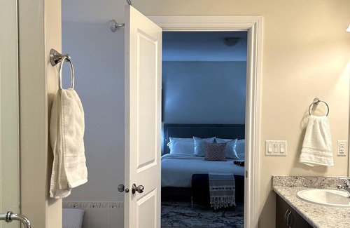 Explore Peterborough in a spacious 5 bedroom luxury home with upscale amenities, free parking, a home gym (garage area), & your home essentials. A short walk will take you to popular food restaurants such as Starbucks, One Fine Food Italian, Kawartha Buttertart Factory, & more. By car, you will be minutes away from downtown where you can shop, eat, & experience all the downtown core has to offer. Whether you are looking for a relaxing family or a corporate stay, this home is the perfect choice.