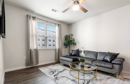 The apartment is beautifully furnished with modern decor and high-end finishes, including a comfortable king-sized bed, plush linens, and a 50 inch flat-screen TV. The living room is tastefully decorated and features a plush sectional, perfect for unwinding after a day exploring the city. The kitchen is fully equipped with all the necessary appliances, including a refrigerator, stove, microwave, and dishwasher, making it easy to prepare your favorite meals.