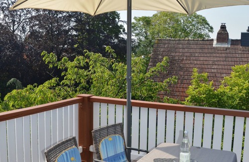 The balcony belonging to the apartment is facing south. Here you can relax in the afternoon on the deck chair and let the evening fade away in the evening. A parasol is available as a shade dispenser.