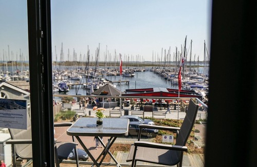 The apartment is designed with real wood parquet. The unobstructable view (south / east) from the living room balcony to the marina and in the evening (south / west) from the bedroom balcony to the lake with the illuminated promenade you can enjoy every day of the holiday. The apartment has two bedrooms with fitted wardrobes (2x box spring beds). The spacious shower room with rain shower and window complete the ambience. For your vehicle, a parking space is reserved in front of the house.