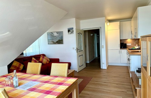 The fine sandy beach welcomes you right outside the door. The beach cafes "Schapers" and "Pietschis" are within walking distance on the new promenade. A supermarket is located in the immediate vicinity. The spacious apartment with plenty of space and development possibilities makes your holiday, not only in summer weather, a pleasant and relaxing stay. A communal washer / dryer is in the basement available to our guests.
