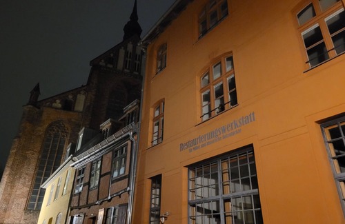 Located in the middle of the island paradise Rügen, Hiddensee, Usedom and Fischland-Darß-Zingst, nestled in the picturesque landscape of the Western Pomeranian Bodden coast lies the Hanseatic city of Stralsund. This exquisite apartment was completed in April 2010 and has a sophisticated equipment. It is located on the second floor in a historic warehouse from the 18th century. Century, in which to the beginning of the 20. Century was operated a Seifensiederei. It is located in the middle of the old town, overlooking the three large churches of Stralsund. All sights, such as the historic market places, the town hall, the harbor, the Ozeaneum or the Maritime Museum are within walking distance. For unloading, you are welcome to drive to the apartment - the nearest parking is in the parking garage at the Ozeaneum. Together with our parking discount card, your parking ticket will be discounted by the Tourist Office. You park at the special price of 8.00 Euro / 24 hours. Upon arrival you pay a deposit of 150.00 Euro. This will be deducted after deduction of incidental charges 14 days after departure to your account. The apartment is not rented to youth groups under 25 years!