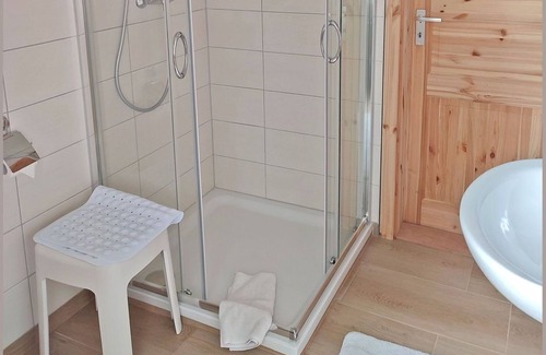In Waldrandlage, on a 4 acre plot are located next to the house and the horse stable of the owner a 105 sqm holiday home for up to 6 people and upstairs of the farm building a small apartment for two people. Around the house and apartment are available to guests about 1,000 square meters of natural land. The entire property is ideal for a riding holiday, as your own horses travel with you and can be accommodated on site. In addition to the house are two guest horse boxes (for a fee, 8 EUR / day / pet), which can be used by tenants of the apartment on request. Paddocks for the pasture of the accompanying horses are also available.On the large nature plot are also a small petting zoo, a small playground and in summer an idyllic orchard with lawn, which can be used by the guests.The further equipment details of the house or the apartment can be found in the room description. The total price includes final cleaning, water and energy consumption (for the apartment energy costs according to consumption!) as well as bed linen, towels. To be paid on site: Pet fee (if applicable) 3 EUR / night, Fee for guest box (if applicable) 8 EUR / night / animal, Energy costs according to consumption (holiday apartment) Pets: A pet is only allowed in the cottage (3 EUR / T). The pet must be registered with the booking. Several animals require the owner's consent before booking. If an entry note is not possible, a late registration must be made.