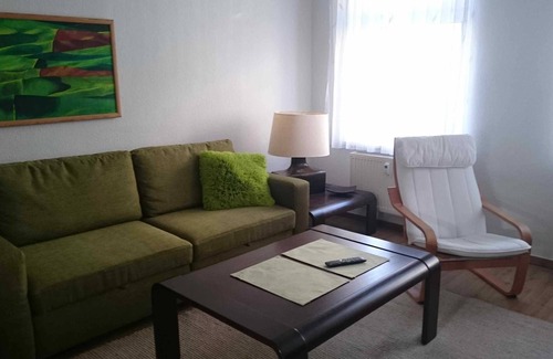 The apartments are located on the ground floor of a 5-family house, in a Tempo 30 street. The entrances to the apartments can be reached from the leafy courtyard. The garden has a seating for quiet evenings. Immediately in front of the living room is free parking in the public traffic area possible. A pick-up service from the train station 1 km away can be arranged with the landlords.