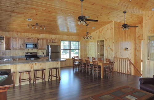 Angel Rock is perfect for family vacations, group getaways and family reunions. A fishing pier, playground, horseshoe pits, sand volleyball court, shuffle board court, and kayak and canoe rentals, and a heated in-ground swimming pool complete your stay.