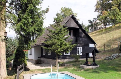 Cottage "Ludek (KNY110)", 2 storeys, detached. 300 m from the centre of Kvasiny, 12 km from the centre of Dobruška, in the residential district, 12 km from the lake. Private: property 400 m2, lawn and trees, swimming pool (6 x 3 m, depth 100 cm, seasonal availability: 16.May. - 12.Sep.). Arbour, garden furniture, barbecue (swing). 30 m long steep motor access. Parking (for 2 cars) on the premises. Shop 300 m, supermarket 9 km, grass beach 12 km, outdoor swimming pool 9 km, bathing lake "Broumar" 12 km. Nearby attractions: Rychnov nad Kněžnou 9 km, Opočno 12 km, Nové Město nad Metují 24 km, Náchod 30 km. Well-known lakes can easily be reached: Broumar 12 km, Rozkoš 25 km.