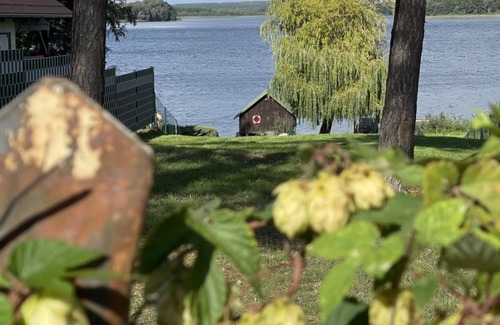 Child friendly, cosy, comfortable residence, built in 2019, surrounded by trees and meadows. 4 houses in the residence. On the outskirts, 2 km from the centre of Wustrow, in a quiet position, 50 m from the edge of the forest, 100 m from the lake, in the countryside. For shared use: natural state property, natural garden 500 m2, meadow. Private beach. Available: canoe. Motor access (via unmade road). Grocery 2 km, supermarket 5 km, restaurant 2 km, bicycle rental 5 km, bus stop "Wustrow" 2 km, railway station "Wesenberg" 5 km, grass beach "Plätlinsee Badestelle" 100 m. Nearby attractions: Schloss Mirow 17 km, Neustrelitz 22 km, Marina Rheinsberg 18 km.