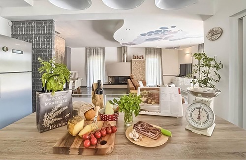 Vacation home with pool and jacuzzi is located in Snasici. Vacation home with pool and jacuzzi provides accommodation, featuring Fireplace/Heating, Hot Tub, Laundry, among other amenities. This House features Fireplace/Heating, Hot Tub, Laundry, to make your stay a comfortable one.