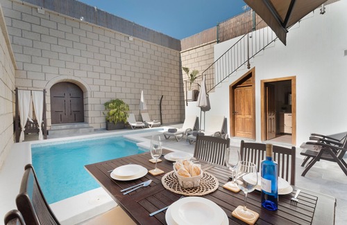 This vacation rental offers a private outdoor space featuring a pool, garden, open terrace, and barbecue.