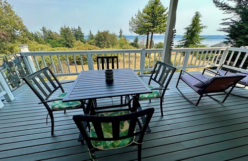 Escape to a serene island retreat with breathtaking views of Mount Rainier and the sparkling waters surrounding Vashon Island. This bright and airy 3-bedroom home offers an idyllic getaway, combining modern comfort with natural beauty. Featuring high ceilings and an open floor plan, the house is filled with light and provides a perfect backdrop for your vacation memories. Multiple outdoor spaces, including a lush garden and expansive deck, invite you to relax and soak in the island atmosphere.