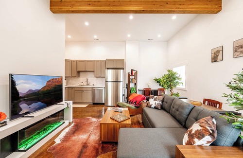 Vaulted Den | Chic Central 1BR + Fireplace is located in Sheridan. Vaulted Den | Chic Central 1BR + Fireplace provides accommodation, featuring Bedding/Linens, Guest Services, Kitchen, among other amenities. This Apartment features Bedding/Linens, Guest Services, Kitchen, to make your stay a comfortable one.
