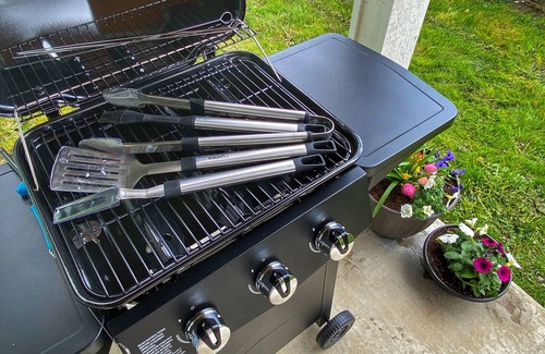 Welcome to Vickery Cottage! Kick back and relax in this guesthouse, which is a calm, stylish space with a vintage vibe. Your reservation includes a cottage with spacious living, approximately 850 sq ft. There is a porch in front of it with a small bistro set and small yard. It features one Queen-size bed in the master bedroom, another Queen size pull-down, murphy bed in the living room. The kitchen features a full fridge, dishwasher, restaurant quality inductive range top with hood and there is an air fry/toaster oven too. An added feature is a full side by side washer & dryer. Huge bathroom space with large walk-in shower. Option: BBQ & eat on patio.