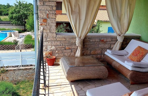 Vila Una Ira house located in small vilage near Svetvićent.lf you search for quaet place with privacy were you can lay down, relax and chill by the pool, while your family members want to be active and play beach volleyball during the day and bigliar in the evening,you can stop lookin this is perfect house for you!Vila Una Ira it is four bedroom house with three balcony and three bathrooms. House is designed for family vacation for you to enjoy. Downstairs is big living room with bigliar, fireplace and big sofa with Android TV for family evenings, kitchen,two bedroom and bathroom. Upstairs are two master bedrooms with private bathroom and balcony.