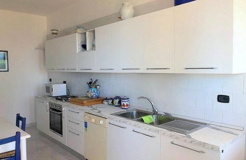 The garden is 60 square meters (645 square feet). It is partly shaded by a palm and by a wood roof. It is equipped with a table, chairs and an external shower. Here you will also find a portable barbecue. From the garden you will enjoy a wonderful view of the beach and of the sea and of the coastline.