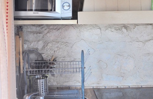 * KITCHEN EQUIPPED with oven, microwave, toaster, refrigerator, pots, pans, kitchen utensils and dishes