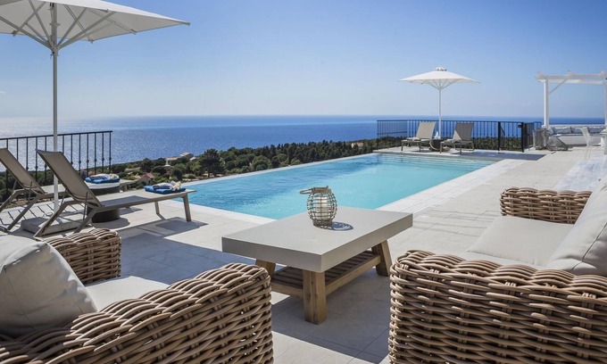 Nestled in Kefalonia, this 4-bedroom, 5-bathroom villa brings it all within your reach. Fans of nature and the outdoors will love being within a 5-minute walk of Ionian Sea and 8 minutes by car from Emblisi Beach. With convenient nearby parking, you'll be ready to make the 4-minute drive to Fiskardo Port or the 31-minute drive to Foki Beach.