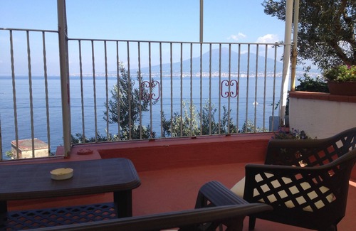 Situated in a villa, the apartment has a living room with kitchen, bathroom, bedroom and a large terrace overlooking the bay and Vesuvius volcano ... where you can relax in peace and enjoy breathtaking sunsets.