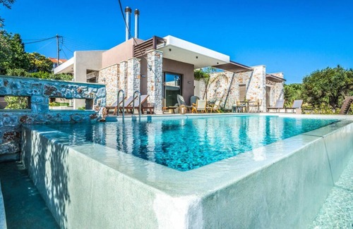 Villa Ariadne offers its guests luxurious accommodation and memorable holidays. It is a new stone built with a modern and tasteful decoration in a quiet green environment with an incredible, unlimited and breathtaking view to the sea and the city center of Chania. It is built at the village of Daratso 2 km away from the beaches of Kalamaki, Agioi Apostoloi and Chrissi Akti. The distance from Chania city center and Venetian port is about 5km.