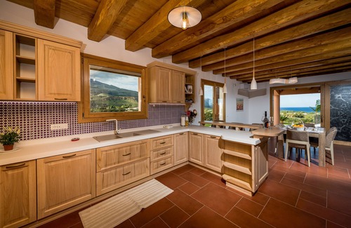 The exclusive 200 square meter interiors are finely furnished and arranged on two comfortable levels. This exclusive luxury villa has been designed and built to ensure high living comfort with the use of top quality materials without giving up the typical characteristics of Sicilian residences such as the precious chestnut wood beams that enhance the ceilings.