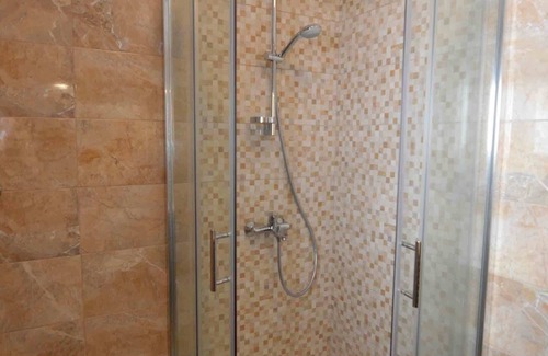 On the ground floor there is a bedroom with double bed and bathroom with shower. This room has a direct entrance to the pool.