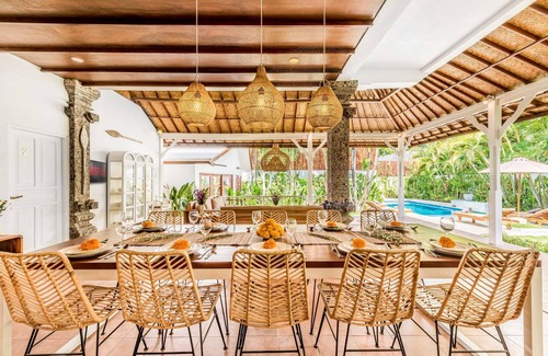 Well isolated from the hustle and bustle, your private villa gives all the energy of a secluded tropical retreat, but wander outside, and you’re right next to Bali’s favorite hotspots. **Enjoy picture-perfect dining at popular local restaurants like KYND and Nook, or opt for a fun game night out with friends at Shooters.