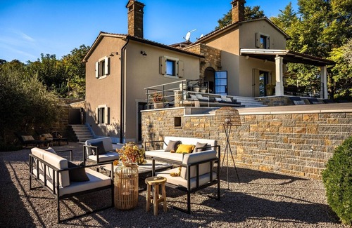 Escape to Villa Boshka, a haven nestled near the tranquil town of Gracisce, surrounded by lush forests that ensure peace and privacy. This exquisite villa seamlessly blends modern and Mediterranean designs, with carefully chosen furnishings and thoughtful decoration creating a warm, homely atmosphere throughout.
