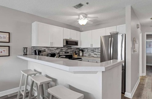 Experience unparalleled oceanfront luxury at Turtle Tides Villa, where breathtaking views and coastal charm harmoniously blend to create the ultimate getaway. Sip your morning coffee on the private patio while the soothing sounds of the ocean envelop you. The elegantly designed interior boasts a coastal-inspired decor with calming hues and plush furnishings that promote relaxation. The well-equipped kitchen invites culinary creations, or indulge in casual dining at Splash by the Sea Restaurant, located within the resort. After a day of sun-soaked adventures at the beach or lounging by one of the three sparkling pools, retreat to the cozy living area for a movie night or unwind in the serene ambiance of the bedrooms. The master suite offers a queen bed and convenient access to a full bathroom, while the second bedroom serves as a versatile efficiency with additional beds and a kitchenette. With amenities like a washer and dryer, you can effortlessly refresh your swimwear and beach towels. At Turtle Tides Villa, every evening brings the opportunity to gaze at the stars or marvel at the moonrise over the water, ensuring that your stay is unforgettable. Once you experience this paradise, you will find yourself longing to return year after year.