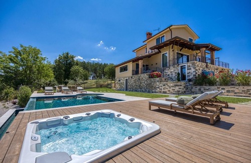 Best-rates for the Motovun villa starts from $781 per night with includes Air Conditioner, Sports/Activities, Bedding/Linens, Fireplace/Heating, Hot Tub, Security/Safety, Wellness Facilities, Spa, Barbecue/Outdoor Cooking, Child Friendly, Kitchen, Parking, Pool, TV, Private Pool, Balcony/Terrace, Internet, Laundry with all other facilities. BedroomVillas.ca matches every traveler with their perfect villa, resort, or rental and whether you are traveling with a group, friends, family, or pets.