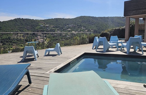 semi-covered terrace (35 m2) - panoramic sea view: teak garden furniture, deck chairs, garden with outdoor shower, summer kitchen with gas plancha.