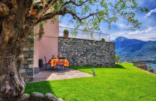 Fabulous apartment in a detached villa with stunning panoramic views of the most characteristic slopes of Lake Como. Large garden from which it is possible to reach the charming barbecue where you can have dinner with friends and romantic evenings. Comfortable and spacious living room with sofa bed, equipped kitchen, double bedroom and bathroom. Private parking space.